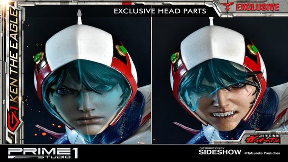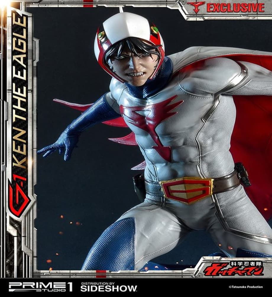Ken the Eagle, the red, white and blue clad hero! The statue stands at about 29 inches and comes with a slew of accessories. The statue comes with two extra heads; two left forearms, one holding a birdarang, an LED light up stand of a destroyed drone, and two portraits.Check out photos of the new piece below!