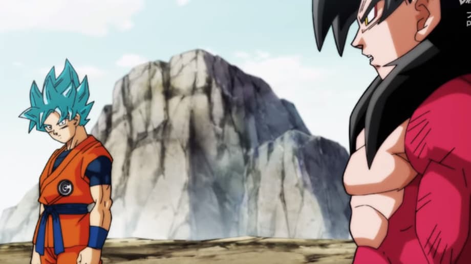 Right off the bat, it's Super Saiyan 4 vs Super Saiyan Blue time. It's difficult to gauge who has the upper hand and they appear equal. However, it should be noted that Dragon Ball Super Goku still has the Kaikoen form and Ultra Instinct.