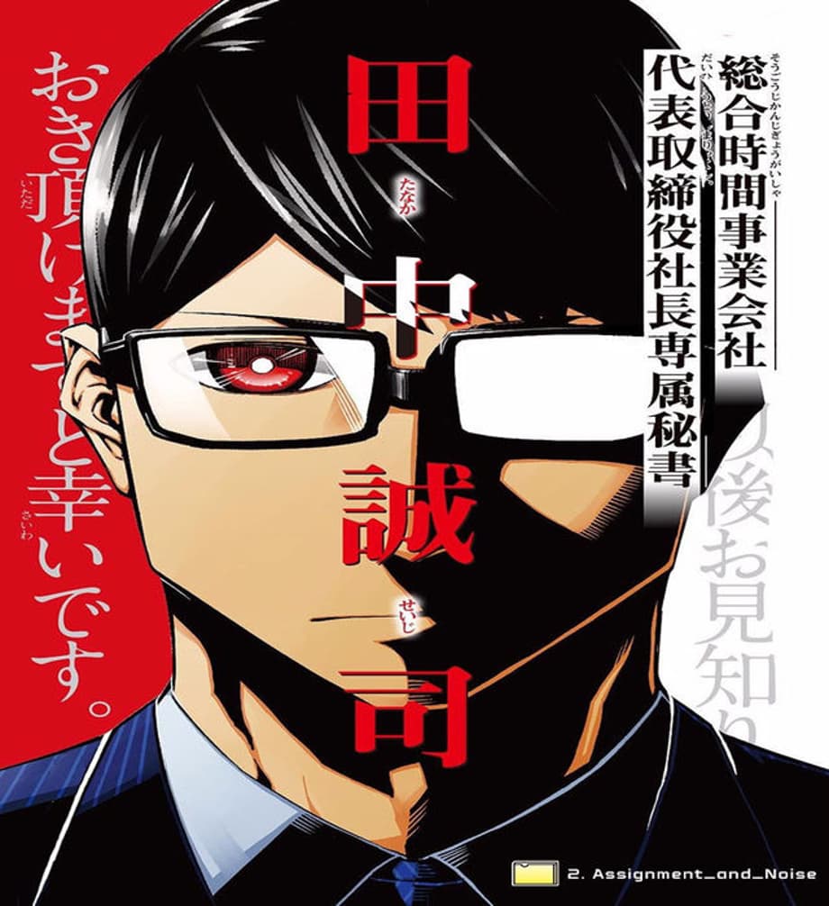 Sogo Jikan Jigyo Gaisha Daihyo Torishimariyaku Shacho Senzoku Hisho Tanaka Seiji (Seiji Tanaka: Secretary to the Managing President, General Time Industries), a mouthful to say, in the least. The story followed Nagato Tokioka; a slacker who has no dreams and no aspirations. But all of this changes when a man named Seiji Tanaka, a time traveling battle secretary, finds him and says that assassins from the future have been sent to kill him.