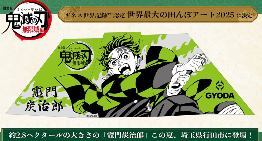 As excitement builds for the release of the anime film Demon Slayer: Kimetsu no Yaiba the Movie: Mugen Castle on July 18th, 2025, a remarkable tribute is taking shape in Saitama Prefecture. The beloved protagonist Tanjiro Kamado is set to be featured in the world’s largest rice field art, a Guinness World Record-certified project in Gyoda City.
