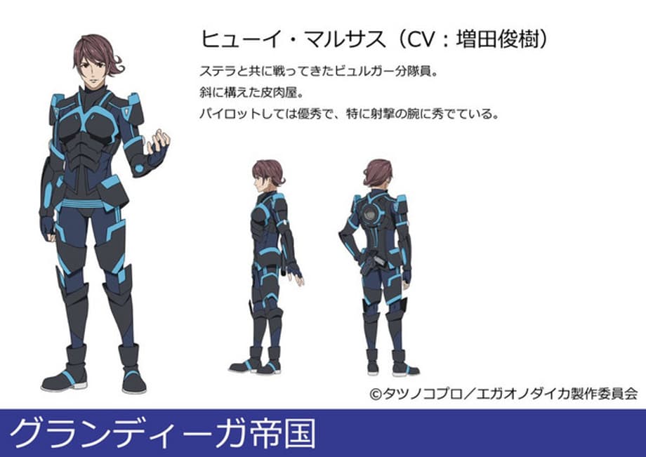Toshiki Masuda as Huey Malthus. He has fought alongside Stella Shining, he is indirect, cynical but a great pilot and marksman.