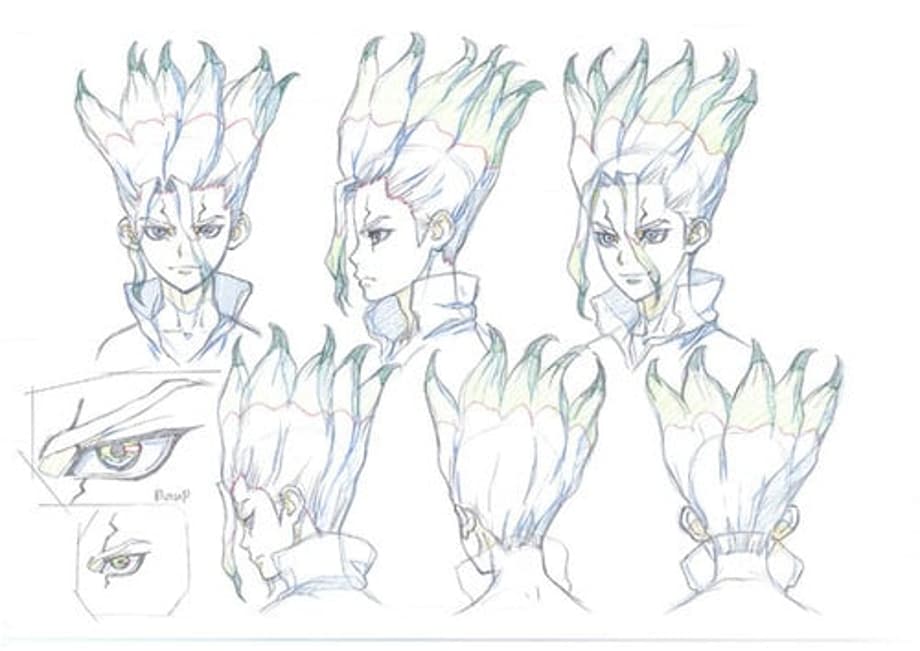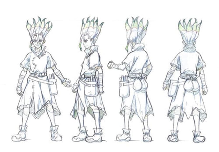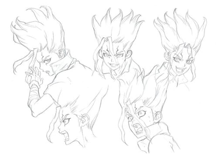 The official website for the anime adaptation of authors Riichirou Inagaki and Boichi's action adventure manga series, Dr. Stone, has shared some of the first line art character designs. Here are the the four main characters of the show as well as their voice actors, followed by their first rough sketches.
