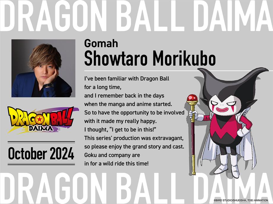 Also announced were three additional cast members. Showtaro Morikubo (Shikamaru Nara in Naruto) will voice Gomah, Junya Enoki (Yuji Itadori in Jujutsu Kaisen) will voice Degesu, and Yoko Hikasa (Mio Akiyama in K-ON!) will voice Dr. Arinsu. They join previously announced cast members Yumiko Kobayashi as Supreme Kai (Mini), Koki Uchiyama as Glorio, and Fairouz Ai as Panzy.