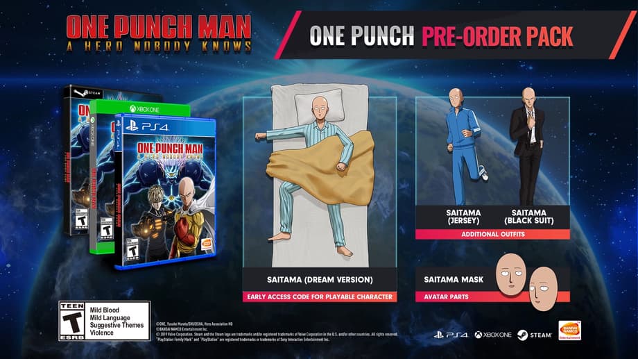 One Punch Man: A Hero Nobody Knows will be getting an Early Access code for Saitama(Dream Version) as a playable character, as well as two additional outfits(Saitama Jersey and Saitama Black Suit) and a Saitama mask that players can make their avatar wear.