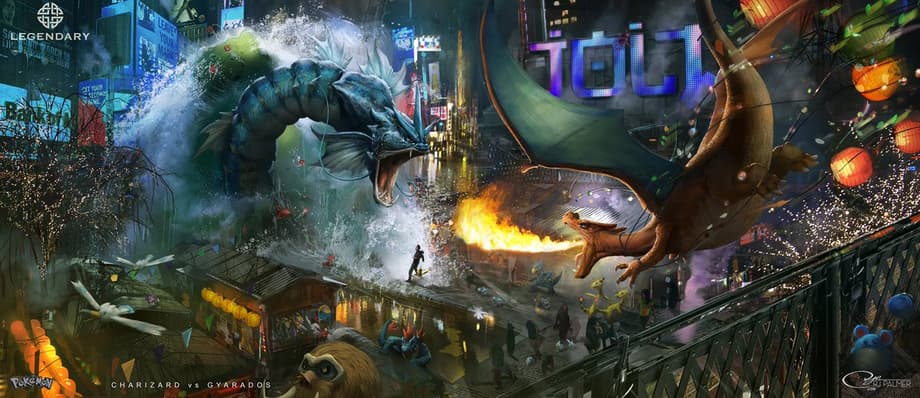 The second piece of artwork appears to show off an enormous battle sequence between Charizard and Gyarados, something much more spectacular than what we got in the final version of the film.