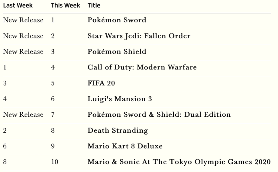 Pokémon Sword alone has already managed to take the number 1 spot, while
