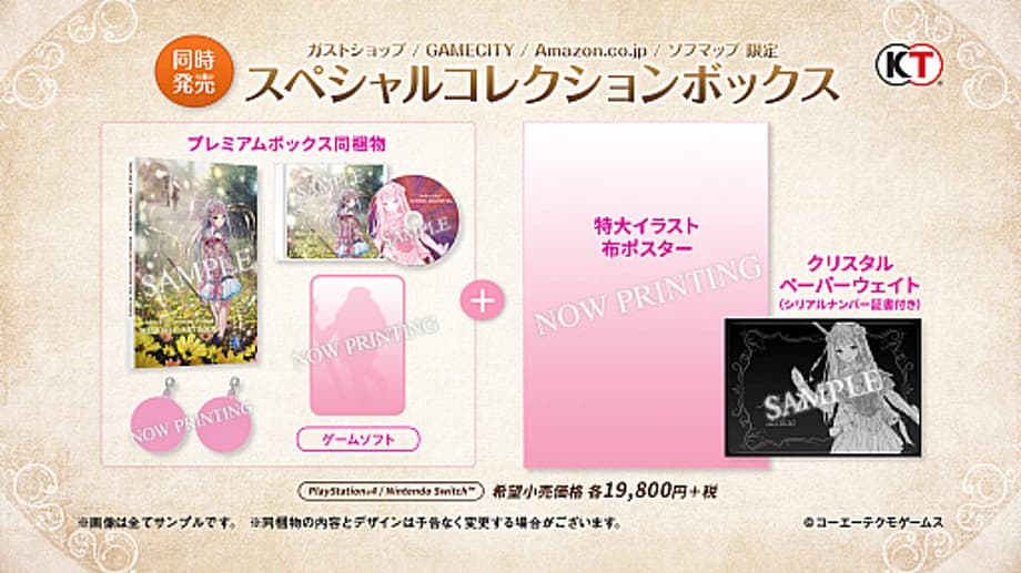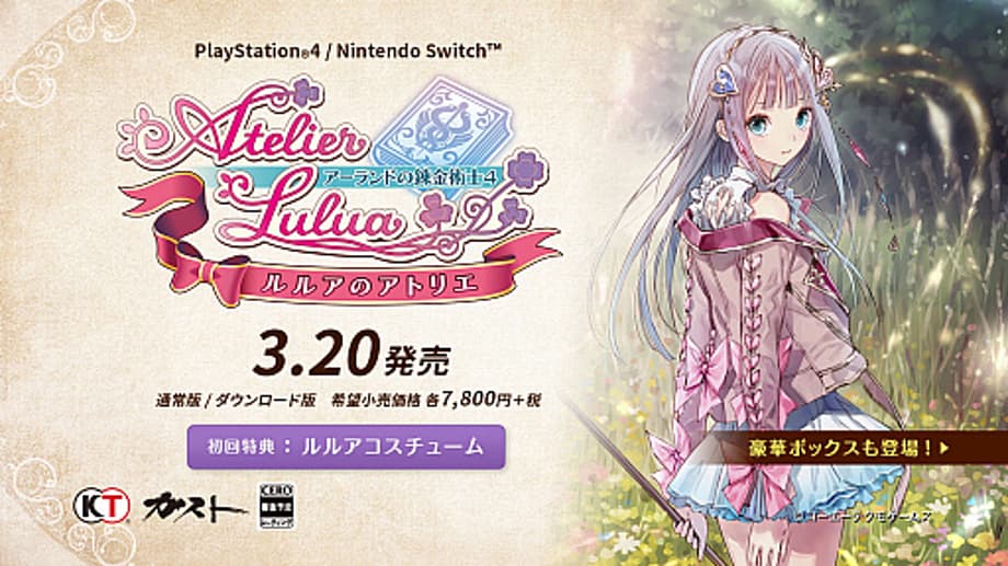 The game will be available in both physical and digital editions. The game by itself will cost 7,800 yen plus tax and the first few copies of the game will include a bonus "Lulua Costume". The premium box and a special collection box are available for 10,800 yen plus tax each. Here are what the packages include: