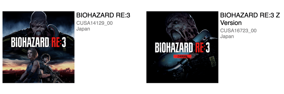 Biohazard RE:3 Z Version — which is likely a deluxe edition of the base game.